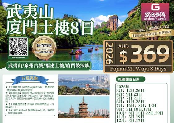 【超值精选】ZGM 厦门潮汕土楼8日-武夷山/泉州古城/福建土楼/厦门鼓浪屿/南普陀寺