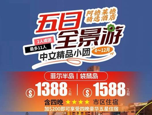 菲尔半岛线-4星住宿 菲尔半岛线-5星住宿 袋鼠岛线-4星住宿 袋鼠岛线-5星住宿